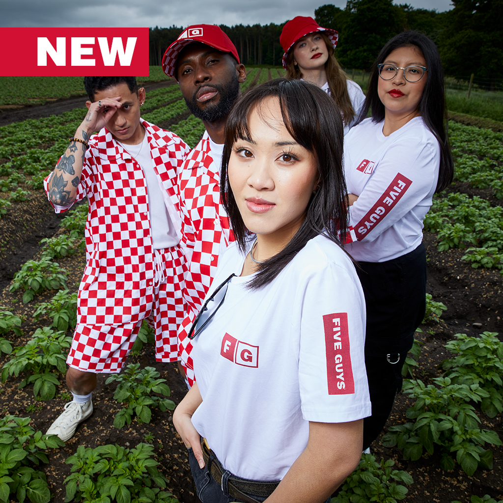 Show up looking fresh. Grab your exclusive Five Guys gear at the Five Guys Merch Shop.